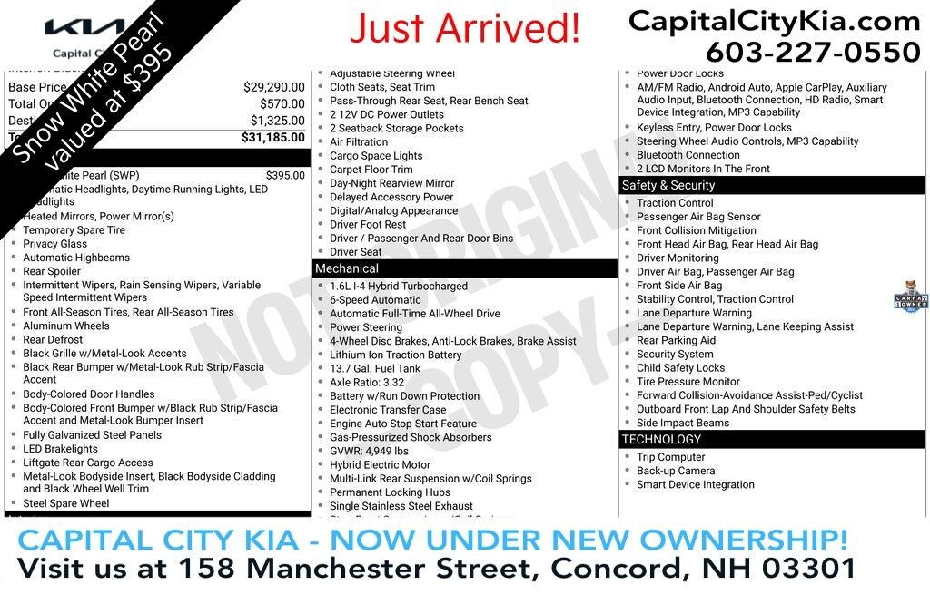 Discover the perfect blend of style, efficiency, and peace of mind with the 2023 Kia Sportage Hybrid LX. Experience the joy of driving this exceptional vehicle and let it elevate your daily commute. Visit our showroom today and take this remarkable Sportage Hybrid LX for a test drive. We're confident you'll be impressed by its exceptional value and performance.