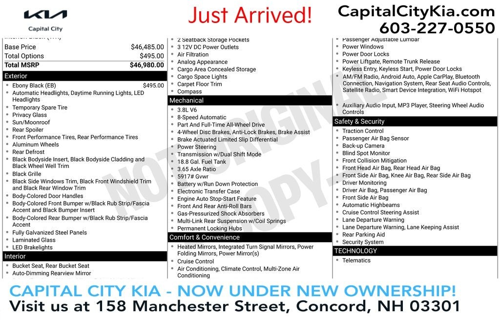 Price includes: $1000 - Sticker Sales Event Retail Bonus Cash. Exp. 01/02/2026 $2000 - KFA Dealer Choice Program: $2000 discount and 5.25% APR for 36 months. $30.08 per $1000 financed. Available to well qualified buyers who finance through Kia Finance America. 506. Exp. 01/02/2026