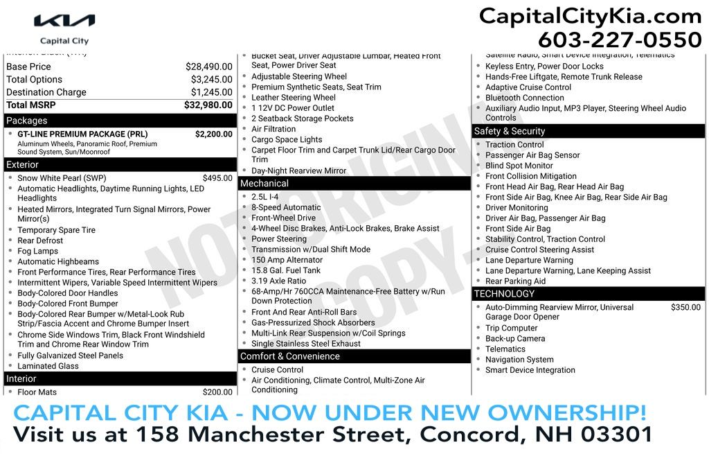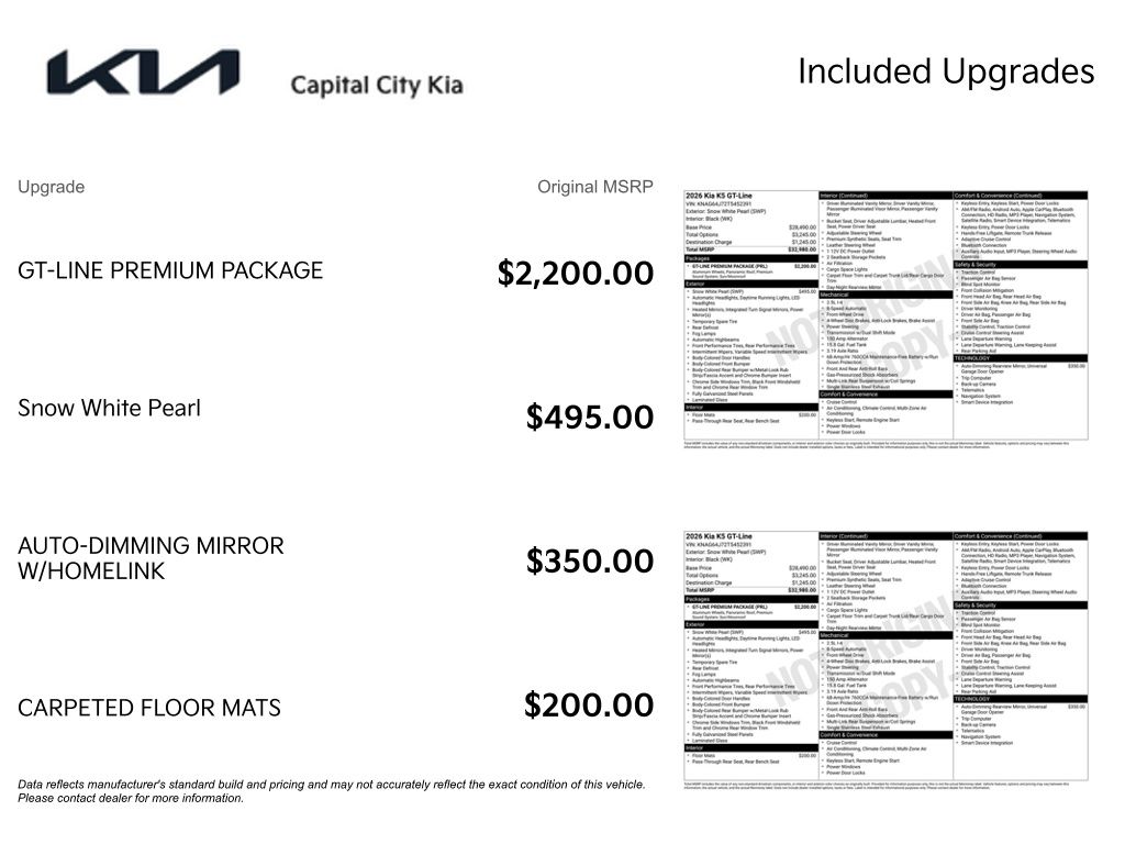Price includes: $1000 - KFA Dealer Choice Program: $1000 discount and 5.25% APR for 36 months. $30.08 per $1000 financed. Available to well qualified buyers who finance through Kia Finance America. 506. Exp. 03/02/2026