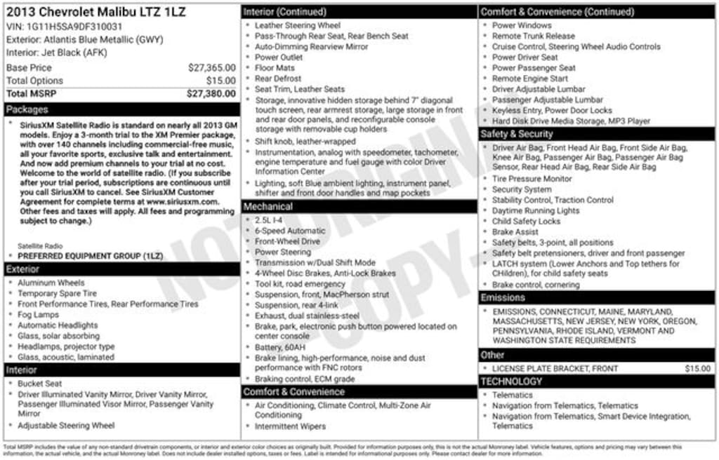 Pre-Owned 2013 Chevrolet Malibu LTZ