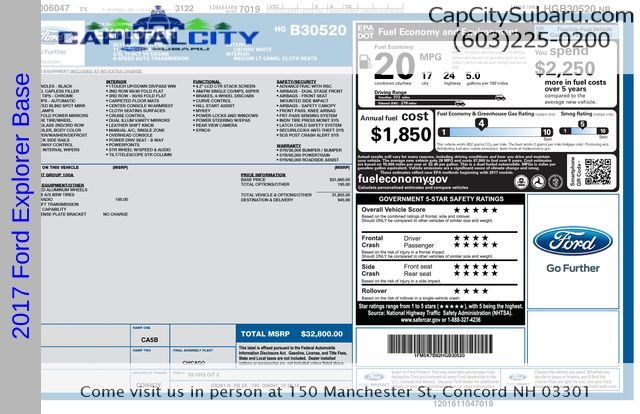 Experience the comfort, capability, and convenience of this 2017 Ford Explorer Base. Visit us at 150 Manchester St Concord NH, 03301 or call us at (603)225-0200 to schedule a test drive. Family owned & operated, with purchases including lifetime New Hampshire State Inspections and use of our complimentary service loaner fleet.
