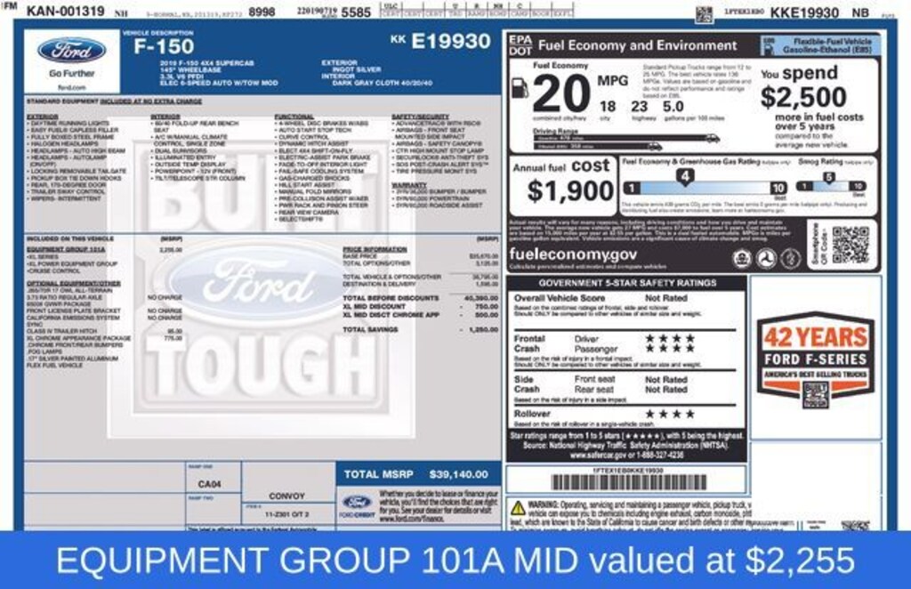 Whether you're hauling heavy loads, towing a trailer, or simply navigating your daily commute, this 2019 Ford F-150 XL is up to the task. With its 4WD capability, you'll have the confidence to tackle any terrain, while the 18 city / 23 highway MPG ratings help keep your fuel costs in check.