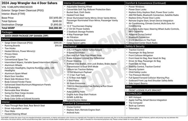 Whether tackling rugged trails or cruising the city streets, the 2024 Jeep Wrangler Sahara 4xe is the ultimate expression of freedom and adventure. Its exceptional capabilities, refined amenities, and iconic Wrangler design make it the perfect companion for those who seek to explore the world on their own terms.