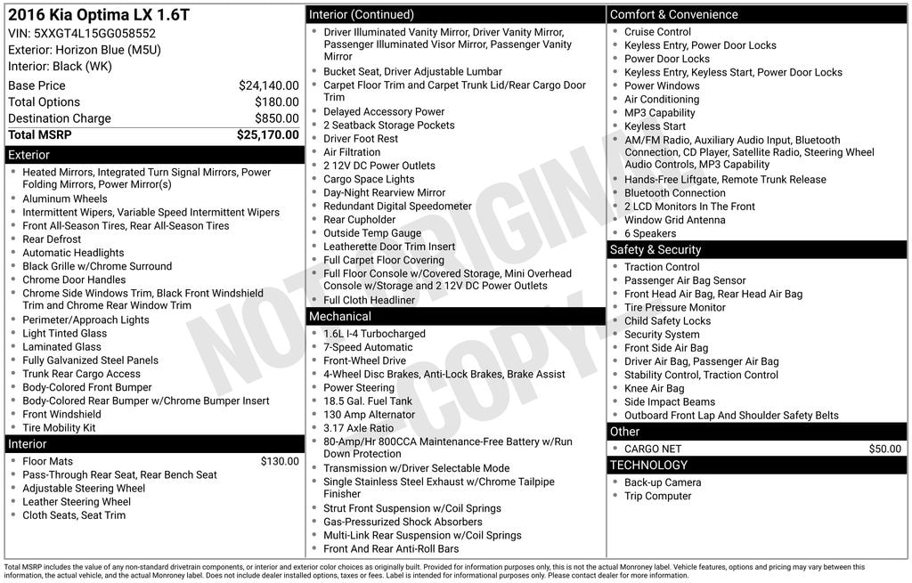 This is a superb vehicle at an affordable price! The engine breathes better thanks to a turbocharger, improving both performance and economy. This 4 door, 5 passenger sedan still has fewer than 60,000 miles! Kia prioritized practicality, efficiency, and style by including: 1-touch window functionality, variably intermittent wipers, and remote keyless entry. Smooth gearshifts are achieved thanks to the efficient 4 cylinder engine, and for added security, dynamic Stability Control supplements the drivetrain.