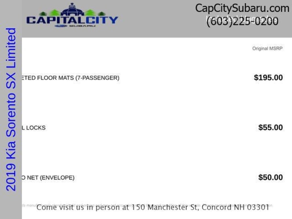 Experience the exceptional craftsmanship and advanced technology of the 2019 Kia Sorento SX Limited. Visit us at 150 Manchester St Concord NH, 03301 or call us at (603)225-0200 to schedule a test drive. Family owned & operated, we're dedicated to providing you with a hassle-free and enjoyable buying experience. Purchases include lifetime New Hampshire State Inspections and use of our complimentary service loaner fleet.