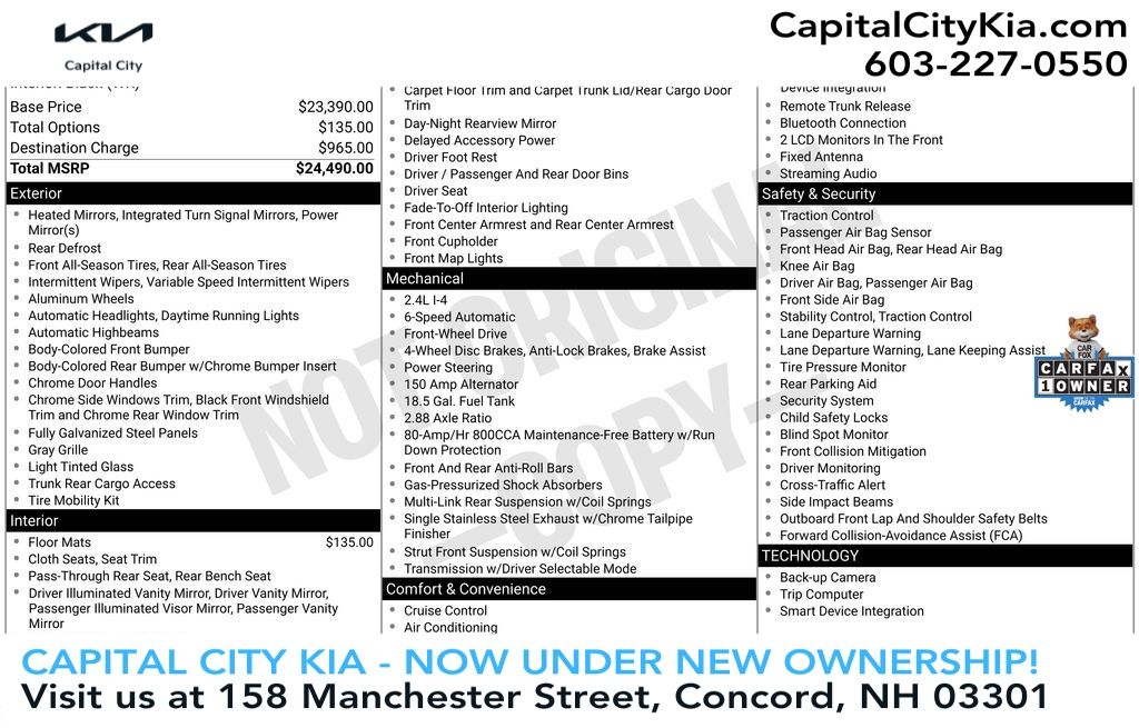Buying a Kia in Concord is now Fast, Fair & Simple. Our commitment to transforming your car-buying experience starts today. We understand that some of you may have encountered challenges in the past, and our primary focus is to turn those experiences around and exceed your expectations. Since 1967, the Rosenberg family has been proud to serve New England car buyers. By emphasizing "family values" in every aspect of the car-buying process, we strive for honest price transparency and unparalleled customer care. Throughout the years, our reputation has been built on prioritizing you above all else. This isn't a marketing slogan; it defines our identity and has been the cornerstone of our business. At Capital City Kia, we believe in being active in our community to help foster trust, and continuously improve based on your feedback. Our mission is to earn your business each and every day and demonstrate the true essence of Rosenberg family values. Thank you for your time and continued support. If you have any questions or if there's anything we can assist you with, please don't hesitate to reach out. We look forward to serving you and exceeding your expectations here at Capital City Kia. 24/32 City/Highway MPG