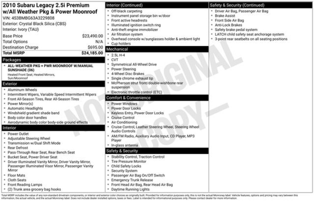 Pre-Owned 2010 Subaru Legacy 2.5i