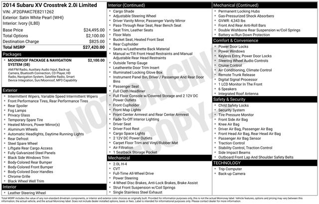 Discover the versatility and sophistication of the 2014 Subaru XV Crosstrek 2.0i Limited. This dynamic crossover SUV blends the off-road capability of a Subaru with the refined comfort and advanced technology you desire.