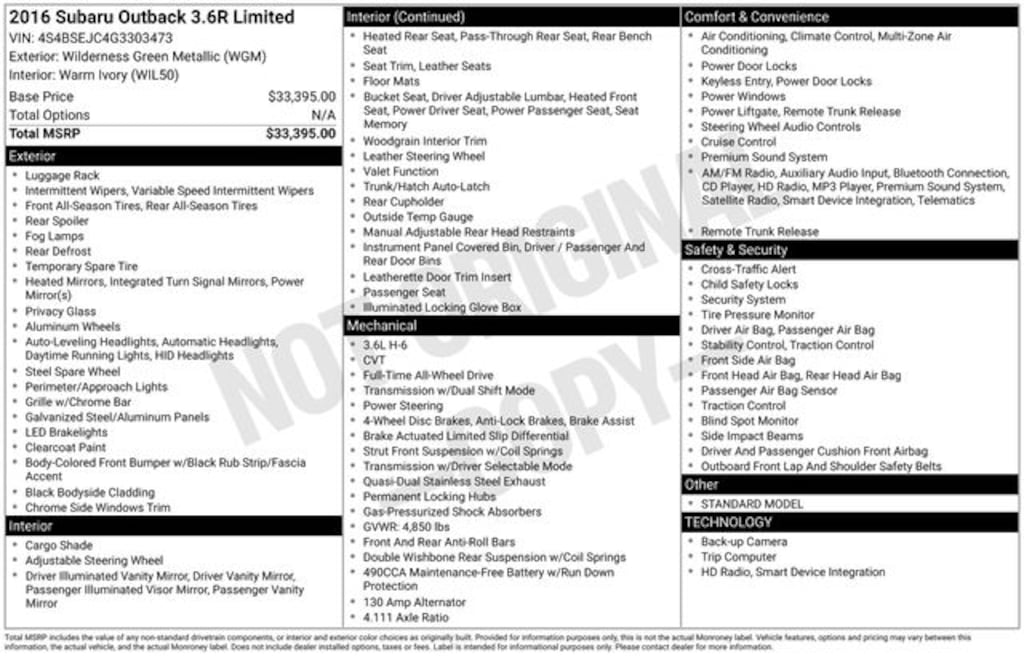 When our Honda CRV was totaled by an idiot in a pick up truck, we started shopping around. We examined all the other alternatives from Ford, GM, Honda, Toyota, Nissan, Hyundai, but it was when the Outback was taken for a test drive it IMMEDIATLY set itself apart from its competitors! Road noise, minimal; interior comfort, OUTSTANDING; road handling, a dream; electronics, mind-blowing array including safety systems; ALSO, and you cannot find this on ANY 2019 SUV in it's class, a CD PLAYER in addition to the satellite and broadcast radio! Yep, a physical real CD player, which means we don't have to put all our music on USB sticks! Ours is the 4 cylinder model, but even still, when you kick down on the accelerator (not the paddle switch on the steering wheel) it can deliver some very impressive acceleration! The back is absolutely cavernous compared to its competition, even before you put the rear seats in a down position! The array of controls available on the steering wheel is impressive to say the least, and will take a bit of learning to get fully comfortable with. When you consider ALL of the standard features, including safety features, that are extra on most of its competition, together with how the vehicle itself performs, this really is a no brainer! Detroit has a LOT of catching up to do, & mainstream Japan automakers, while maybe having the same technology, don't even come close to this level of appointments as standard at this price point!… - 5.0