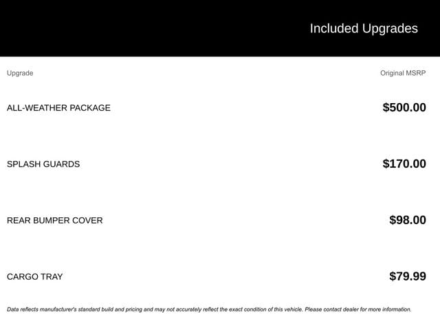 - ALL-WEATHER PACKAGE: Enjoy the added comfort and safety of heated front seats, heated exterior mirrors, and a windshield wiper de-icer.
