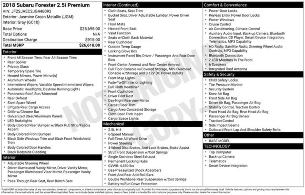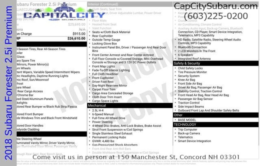 Whether you're seeking a capable and practical family SUV or a versatile companion for your active lifestyle, the 2018 Subaru Forester 2.5i Premium is the perfect choice. Experience the confidence and convenience that this exceptional crossover has to offer.