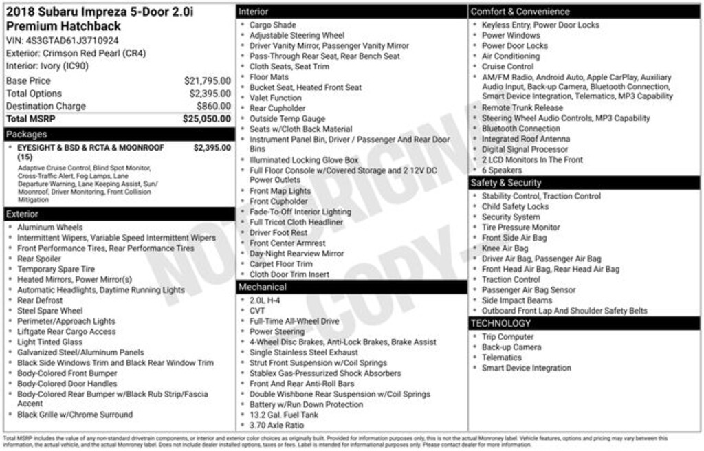 - EyeSight & BSD & RCTA & Moonroof