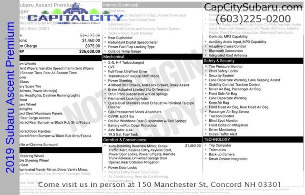 Discover the perfect blend of capability, comfort, and convenience with this exceptional 2019 Subaru Ascent Premium. Boasting a spacious interior, advanced safety features, and a powerful yet efficient 2.4L DOHC Lineartronic CVT AWD engine, this Ascent is ready to elevate your driving experience.