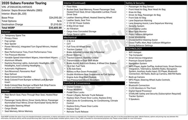 Elevate your driving experience with this exceptional 2020 Subaru Forester Touring. Boasting a striking Brown exterior, this all-wheel-drive SUV is a true testament to Subaru's commitment to versatility and performance.