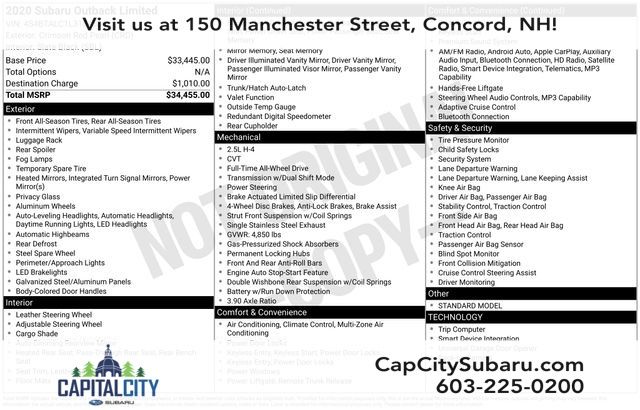 Discover the perfect balance of capability, comfort, and technology in the 2020 Subaru Outback Limited. This exceptional SUV is ready to elevate your driving experience and take you on unforgettable journeys. Schedule a test drive today and experience the Outback's exceptional quality for yourself.