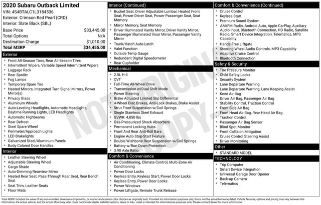 Experience the exceptional 2020 Subaru Outback Limited, a versatile and well-equipped SUV that's ready to elevate your driving adventures. This stunning Red Outback boasts a 2.5L 4-Cylinder DOHC 16V engine paired with a CVT Lineartronic transmission, delivering a smooth and efficient all-wheel-drive performance that will conquer any terrain.