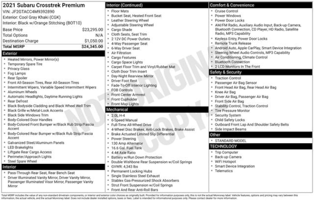 Don't miss the opportunity to experience the exceptional value and versatility of this 2021 Subaru Crosstrek Premium. Schedule a test drive today and discover why this crossover is the perfect blend of performance, practicality, and style.