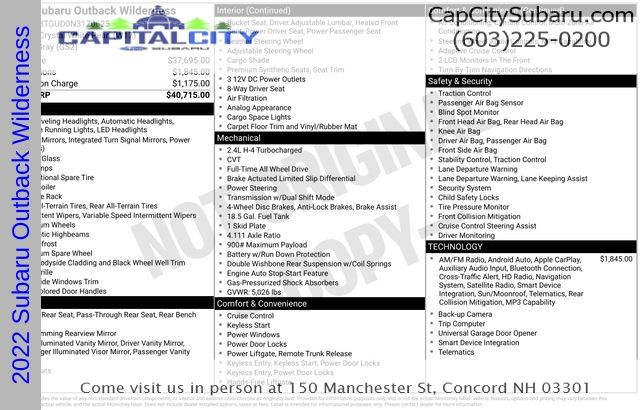 Whether you're embarking on a rugged outdoor adventure or navigating the daily commute, the 2022 Subaru Outback Wilderness is the perfect companion. Its uncompromising blend of capability, comfort, and cutting-edge technology makes it a standout choice in the SUV segment.