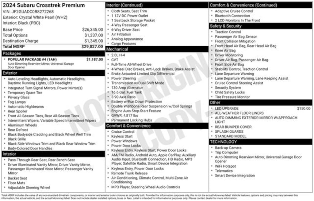 An awesome price considering its low mileage! With fewer than 3,000 miles on the odometer, this 4 door sport utility vehicle prioritizes comfort, safety and convenience. Top features include cruise control, front bucket seats, air conditioning, and remote keyless entry. Smooth gearshifts are achieved thanks to the 2 liter 4 cylinder engine, and for added security, dynamic Stability Control supplements the drivetrain.
