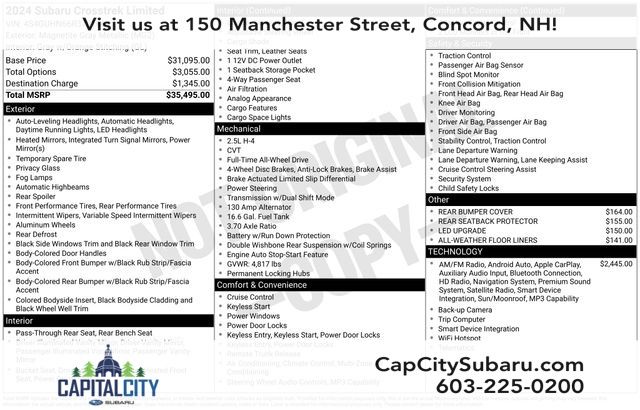 Discover the perfect blend of capability, comfort, and technology in the 2024 Subaru Crosstrek Limited. Experience it for yourself and let this exceptional crossover SUV elevate your driving experience.
